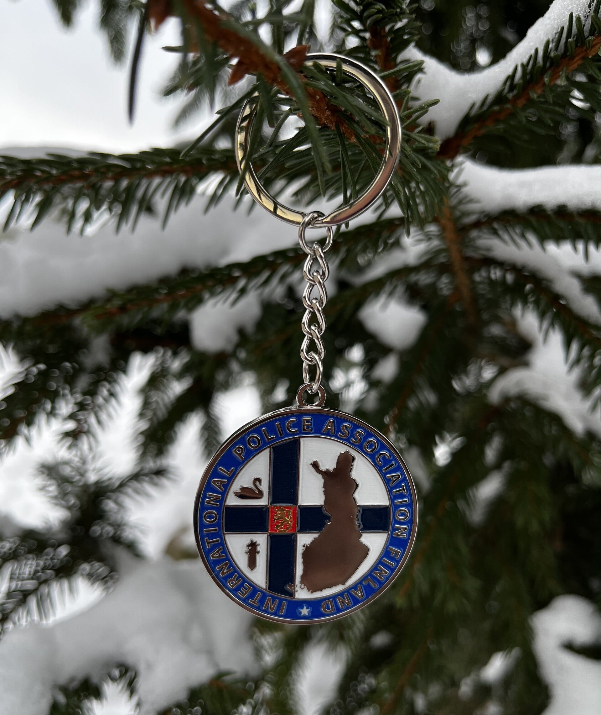 Upea metallinen IPA Suomi avaimenperä. Painatukset molemmin puolin.